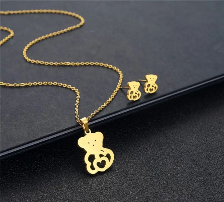 Title: New! 3 Piece Set - Bear Hollow Heart Pattern Stud Earrings & Pendant.