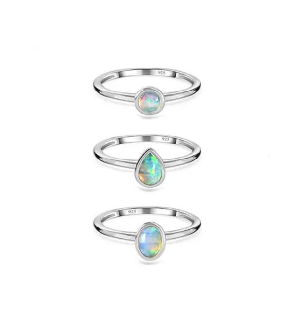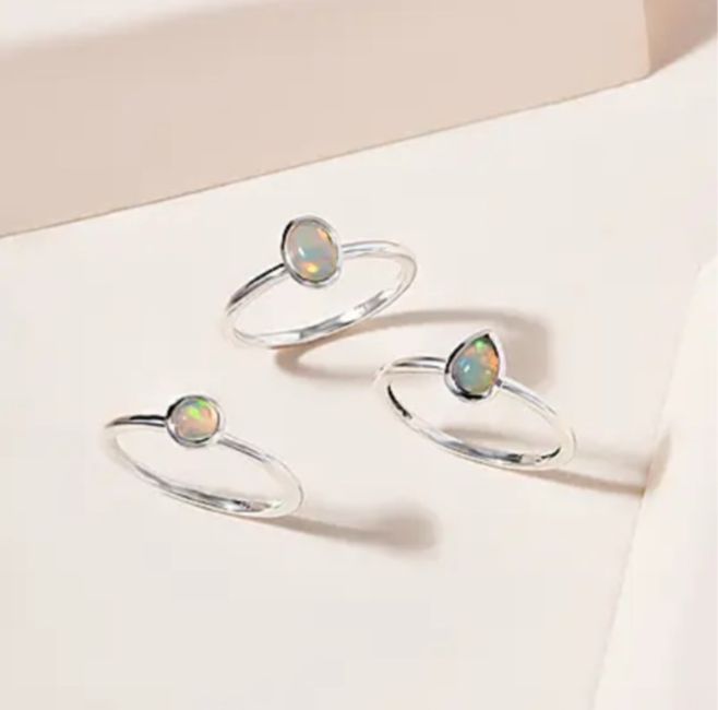 Each ring twinkles with a unique opal, boasting a kaleidoscope of vibrant hues that dance in the light. Designed to wear stacked or solo, these rings offer a flexible expression of your style.