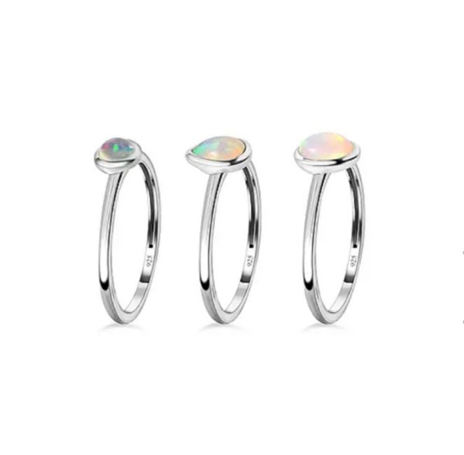 Dazzle with versatility in this Set of 3 Ethiopian Welo Opal Stackable Solitaire Rings.
