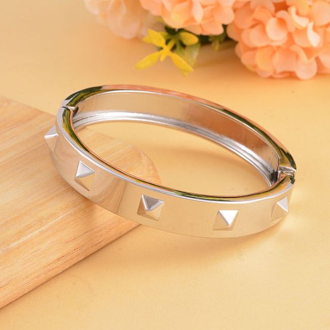 This striking bangle, adorned with edgy pyramid spikes, is a fusion of rebellious spirit and sleek design.