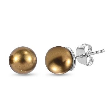 New! 2 Piece Set - Antique Brass Pearl Finest Austrian Crystal Earrings & Pendant with Chain (Size 20) in Platinum Overlay Sterling Silver.