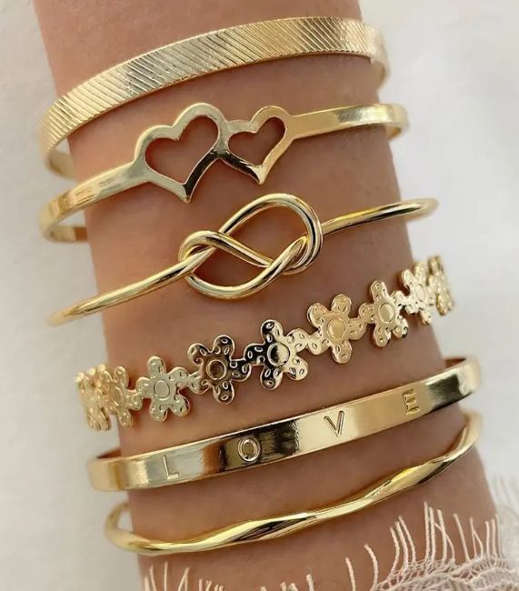 Title: New! 6pc Love Heart Flower Bangle/ Bracelet Set.