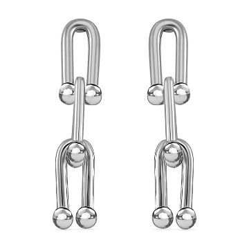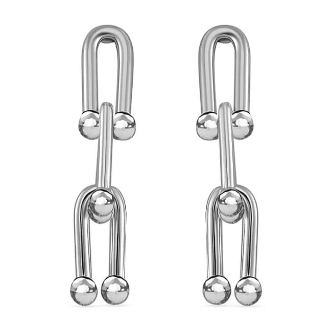 The earrings carry the look of industrial chain in the finesse of silver tone.