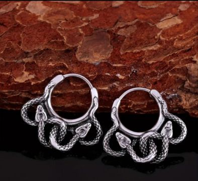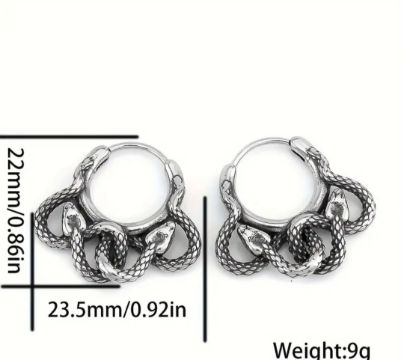 New! 1 Pair Circle Snake Earrings, in Stainless Steel.
