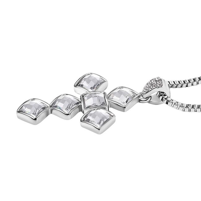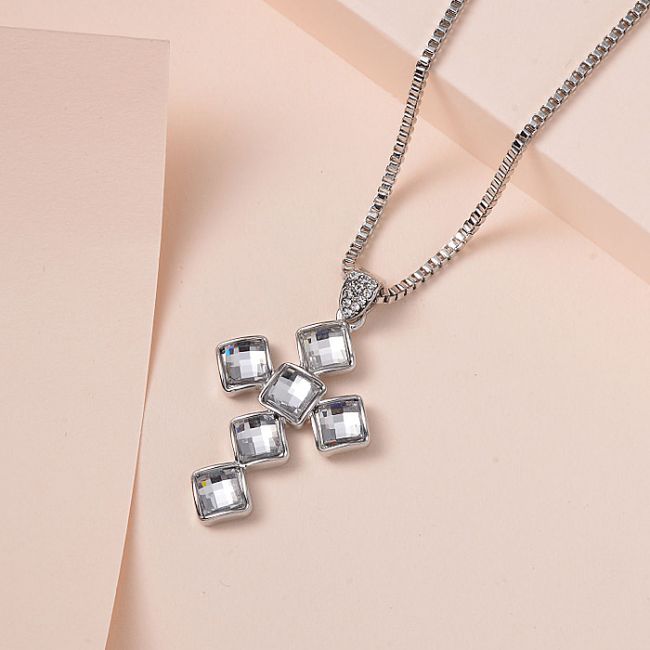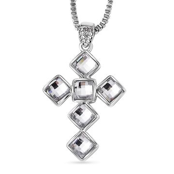 Title: New! Grey & White Austrian Crystal Cross Necklace