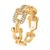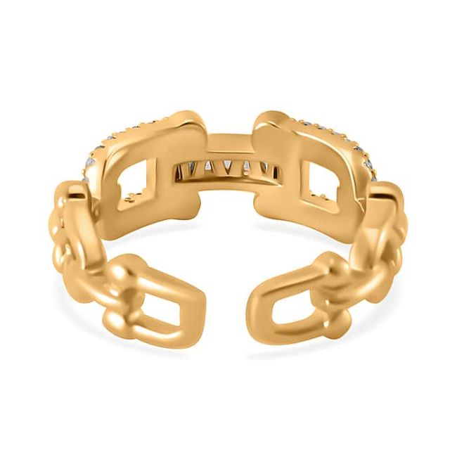 This Designer Inspired -White Cubic Zirconia Adjustable Ring boasts an unconventional design with gemstone-studded links creating an interesting pattern.
