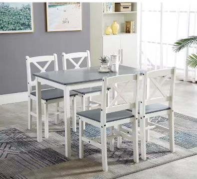 This traditional style table and chairs set is the timeless look your kitchen deserves. In a soft white and grey design, it's two-tone finish offers a touch of country cottage charm. This hard wearing solid wooden set is perfectly sized for smaller dining areas and comes complete with 4 chairs that complement the table perfectly. The solid wooden table top is durable enough to take any spillages or mess during your family breakfast/meal time, letting you able to enjoy your families company. Please note we are currently unable to deliver to Channel Islands, Isle of Wight, Isle of Man, Scilly Isles, Scottish Islands and N. Ireland.