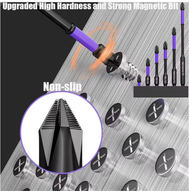 Deep Bite Design: The deep bite design of the screwdriver bits allows them to engage more deeply with screw heads. This can reduce the potential for head slippage and improve overall work efficiency by providing a stronger connection between the bit and the screw.