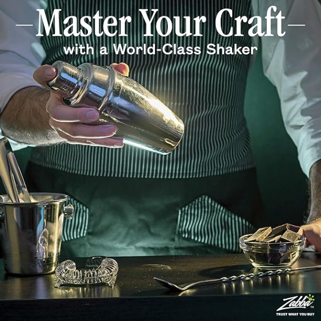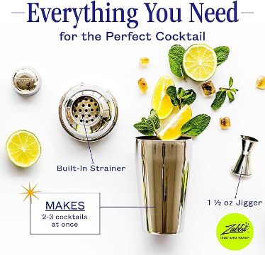 The mixer set includes a 700ml shaker with built-in strainer and a 15ml/30ml jigger.