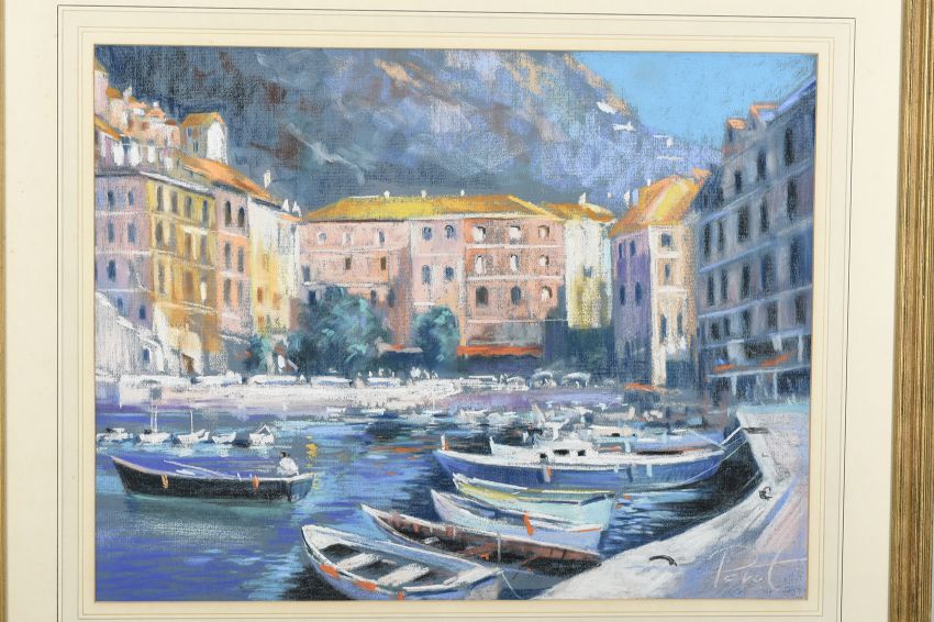 5302 - An original pastel painting which is a beautifully coloured South of France scene by the artist Perot (AKA Joel Kirk 1948-2020)