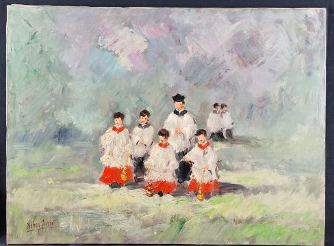 1927 - Original Oil on Canvas by Italian Artist Walter Piazzi depicting a choir.
