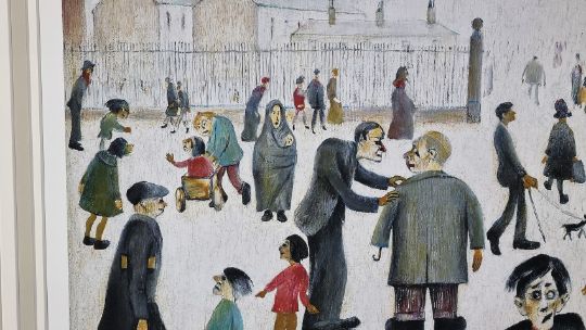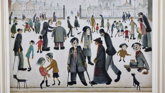 This painting was influenced by Lowry's observation of the cross section of the most afflicted characters he often saw around Manchester in the wake of the war.