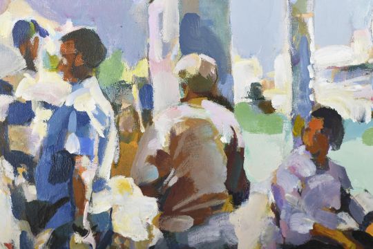 4935 - Original oil on canvas by the Hong Kong Artist Luk Kwok Yuen depicting a traditional Hong Kong busy street scene.