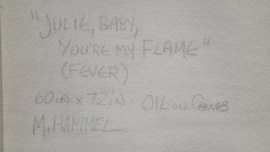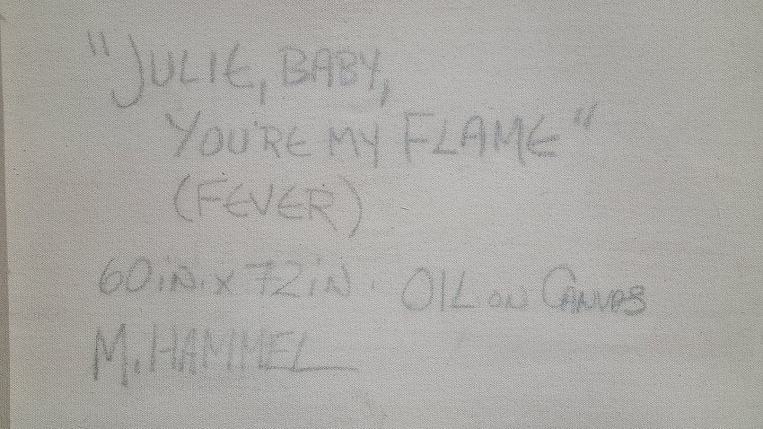 This stunning original painting is titled "Julie Baby, You're My Flame" (Fever)