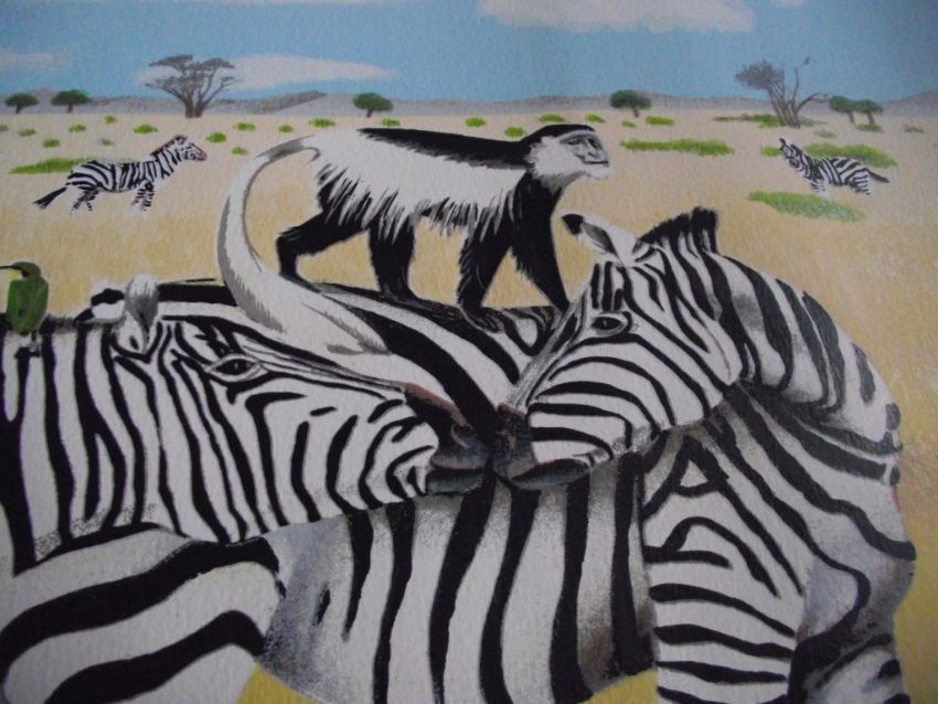 Condition: Very good - thick handwoven paper - clean and bright - minor crease marks to large margin - No.39/200 - Zebra and Colobus Monkeys - signed E.B. Watts - see all images for condition.