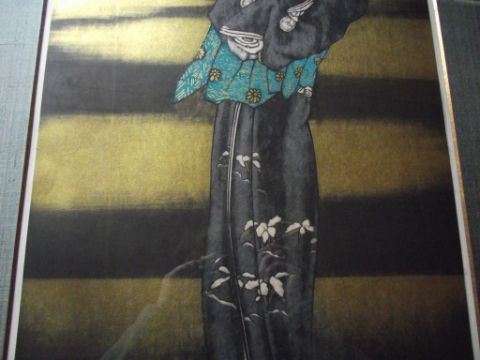 The artist was famous worldwide for his depictions of characters from the puppet theatres of Japan and his works are highly sought after due to the small limited editions he produced.