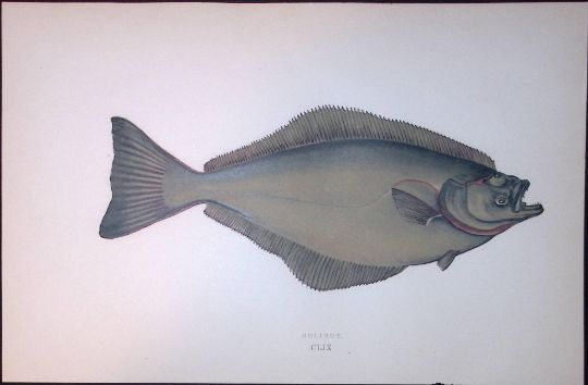 Title: Holibut Fish Scarce Antique 1877 J. Couch Woodblock Engraving-166