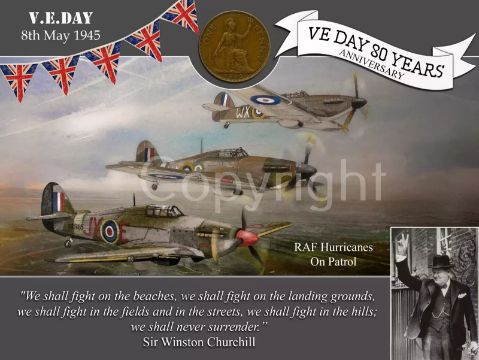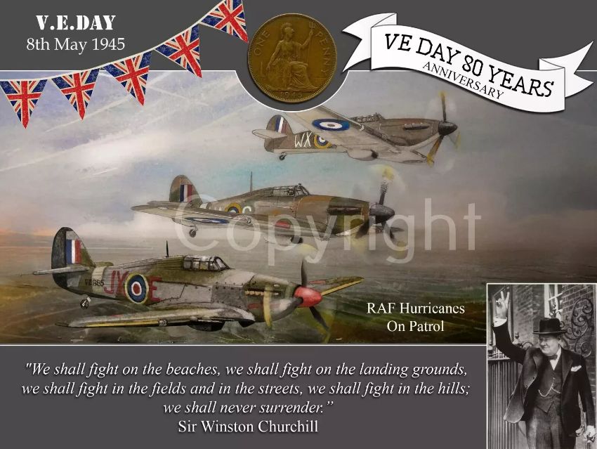 Title: VE Day 80th Anniversary Hurricanes On Patrol Designed Metal Art Coin Display