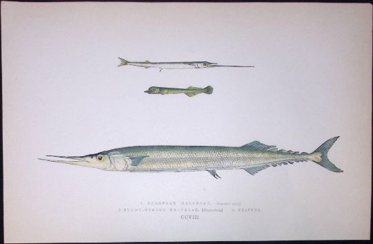 Title: Halfbeaks Fish Scarce Antique 1877 J. Couch Woodblock Engraving-135