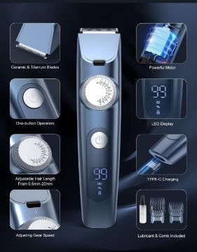 • TYPE - C Quick Charge - Professional hair clipper is powered by a powerful lithium-ion battery that runs for at least 120 minutes after a full charge of approximately 90 minutes. Type-C charging port for connecting a USB adapter or other USB powered device. The cordless hair clipper's LED display clearly shows the percentage of battery remaining.