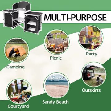 Designed for campers, BBQ lovers, and outdoor chefs, this versatile cooking station provides ample workspace and organized storage—all in a compact, easy-to-carry design.