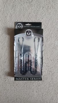Made for nipple play, also works great on other parts of the body, these clamps go around each nipple and squeeze.