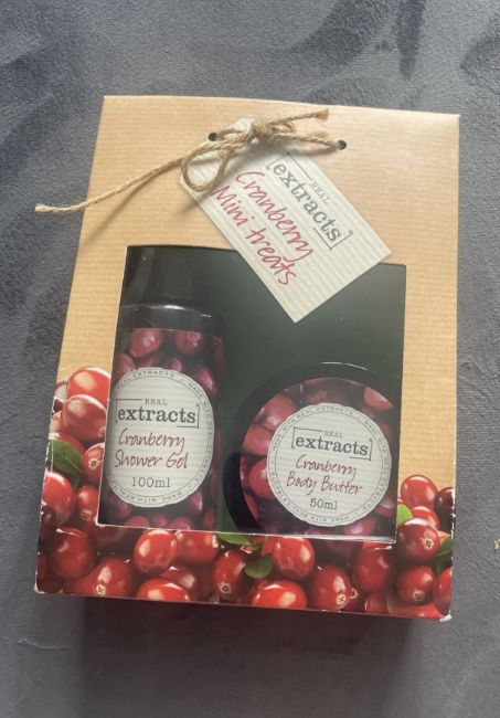 - Real Extracts Cranberry Mini Treats – A set of cranberry-scented body care essentials (100ml shower gel + 50ml body butter).