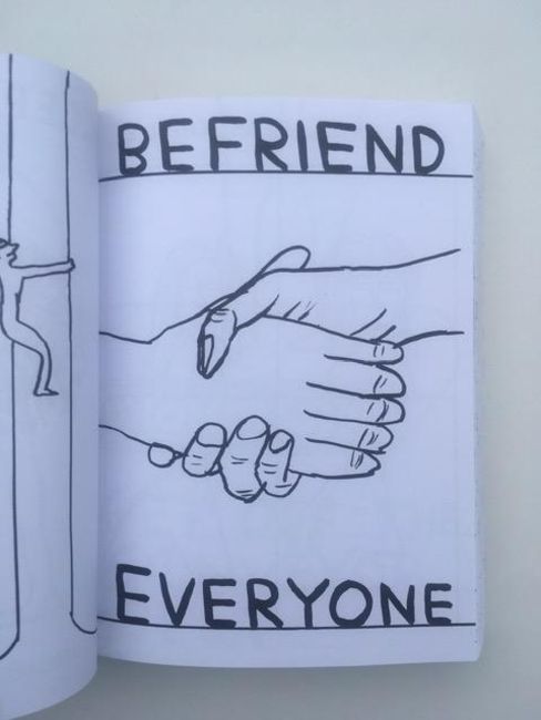 With a casual gesture Shrigley points to that hideous shape whose name I've never known - and then he names it. And the name is profoundly, embarrassingly familiar. I'm laughing while frantically searching for a pen, so desperate to capture the feeling he has unearthed in me -- MIRANDA JULY