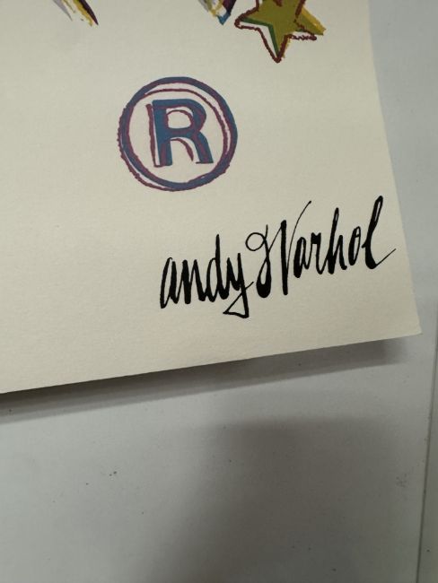 It features a printed signature and a CMOA stamp, replicating elements from Warhol’s classic prints.