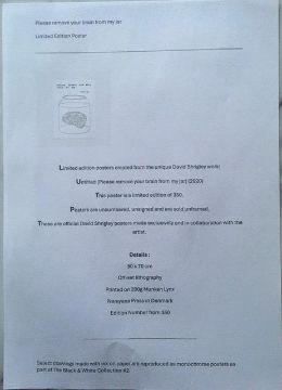 Title: David Shrigley OBE (b 1968)’Please Remove Your Brain From My Jar’ Offset Lithograph, Edition, 2020