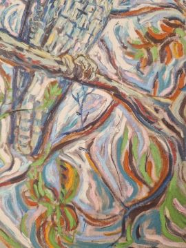 By Billy Childish. This is a painting of a Reunion Owl was Billys Contribution to the plight of endangered and extinct birds.