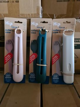 50pcs - Assorted colours Reusable cutlery set - 3pc with cover - eco style rrp £6.99 - 50pcs assorted in lot