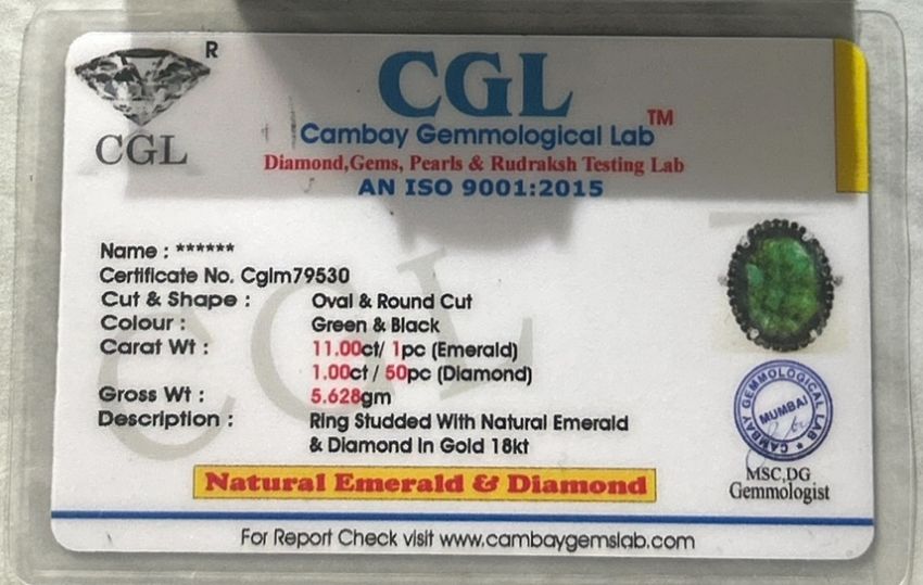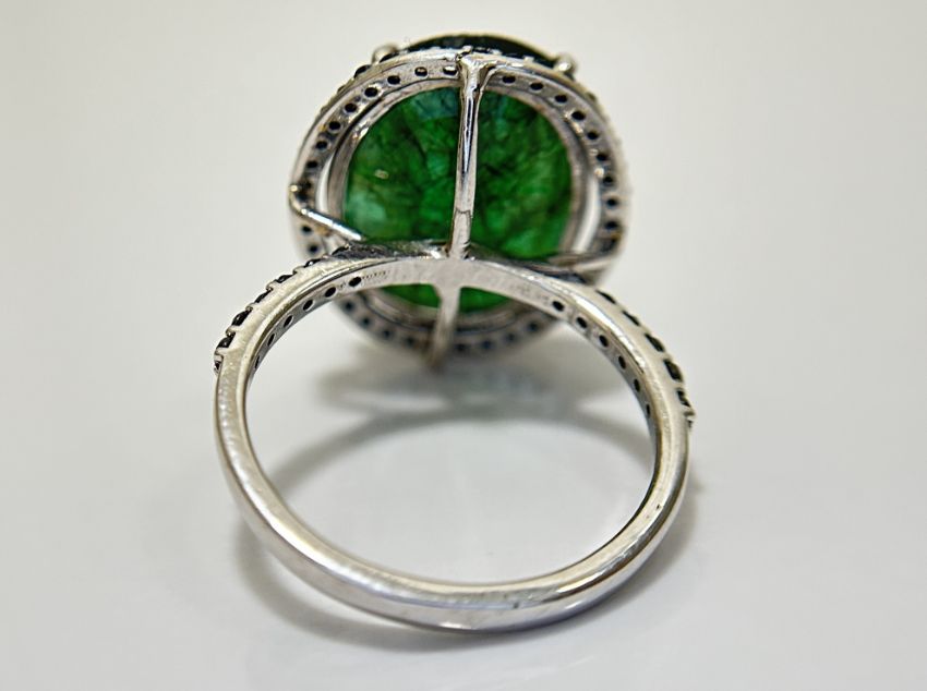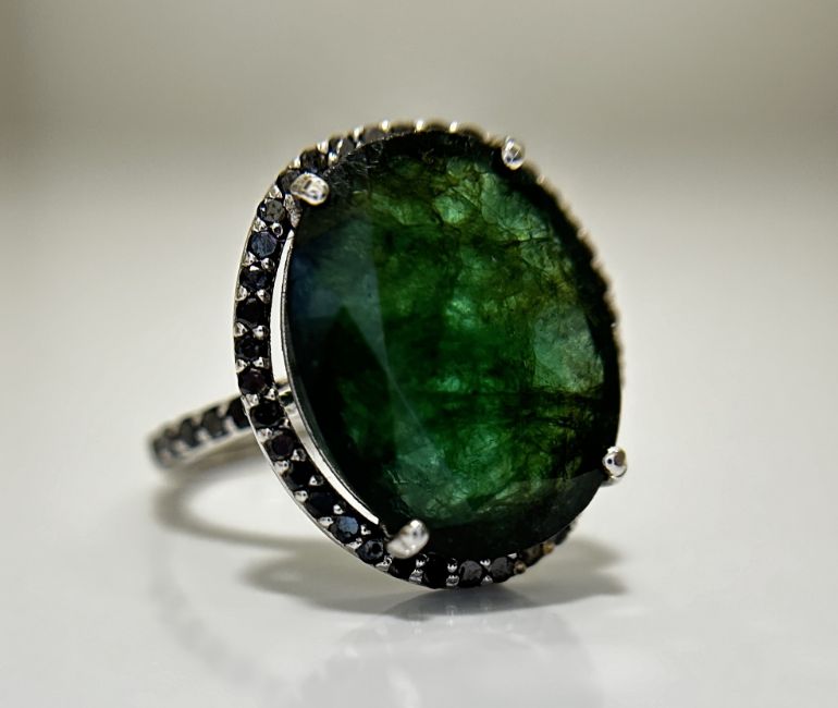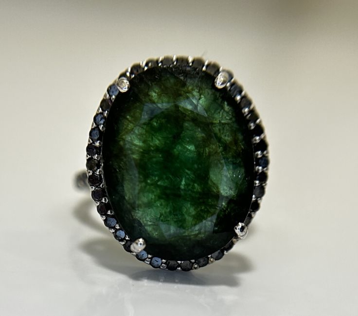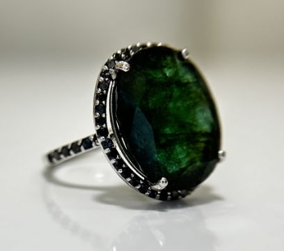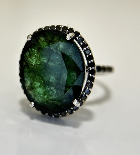 Title: Beautiful Natural Emerald 11ct With Natural Black Diamonds & 18k Gold