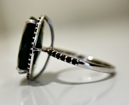 Beautiful Natural Emerald 11ct With Natural Black Diamonds & 18k Gold