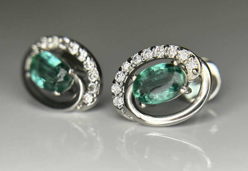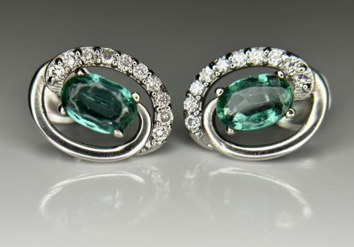 Title: Beautiful 0.93ct Natural Emerald, Diamond Halo Set Stud Earrings In Platinum 950