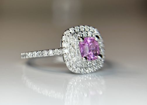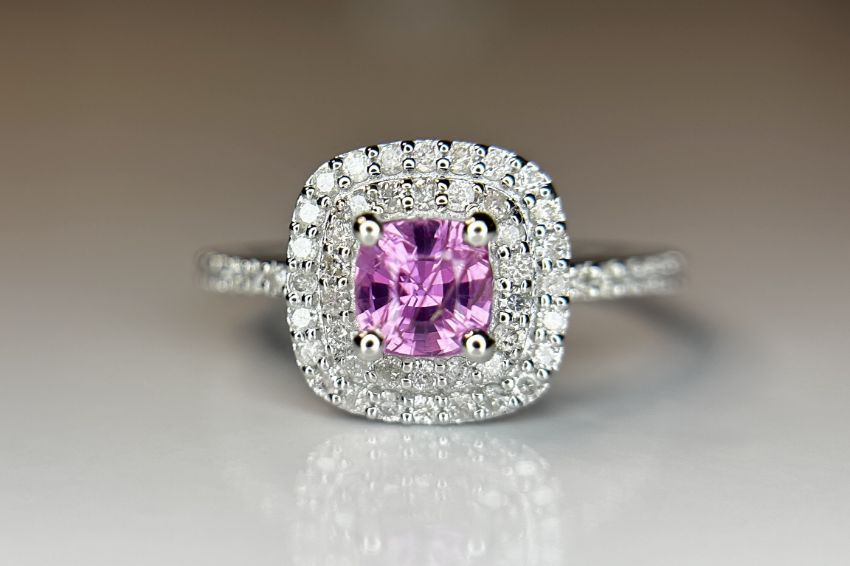 Title: Beautiful 0.63 CT Unheated Ceylon Pink Sapphire With Natural Diamonds & 18k Gold