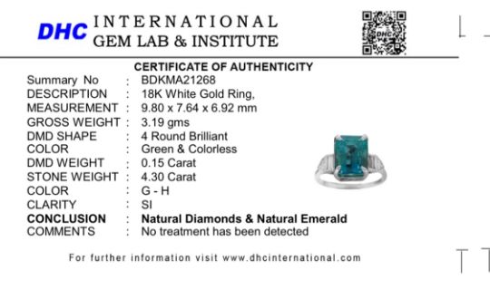 Title: Beautiful 4.30 CT Natural Emerald With Natural Diamonds & 18k Gold