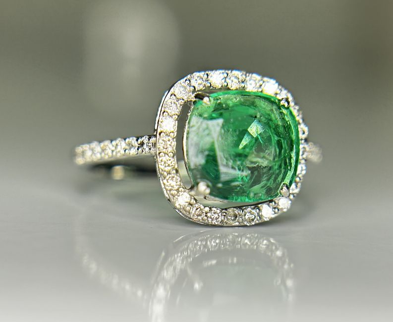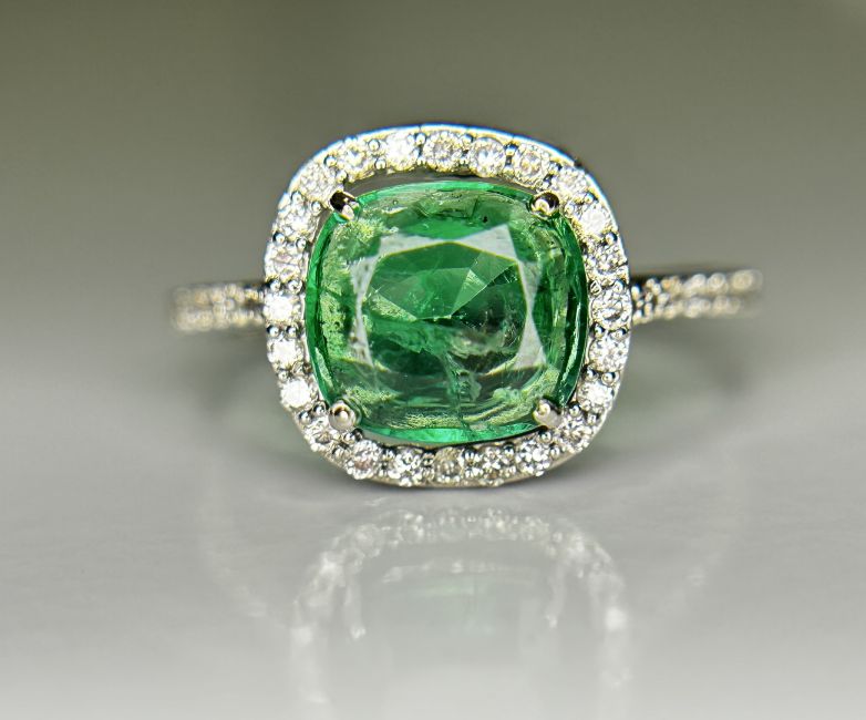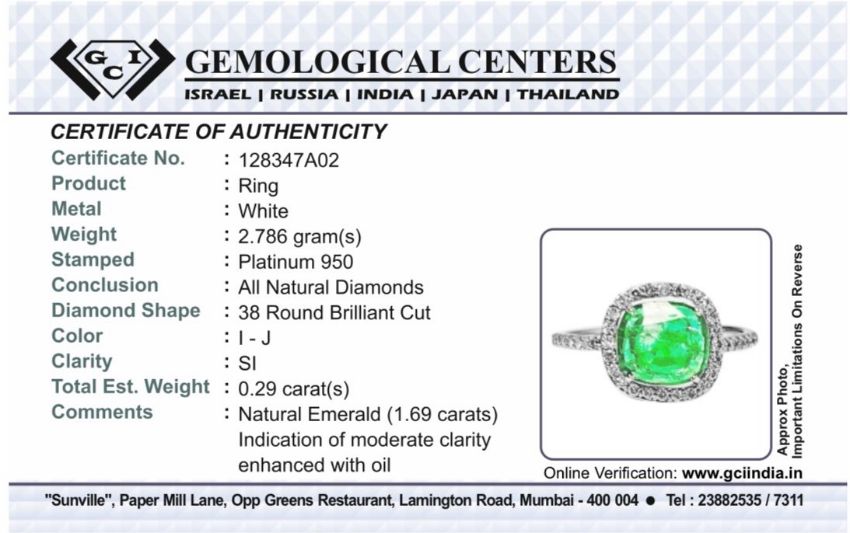 Title: Beautiful 1.69 CT Natural Emerald Ring With Natural Diamonds & Platinum 950
