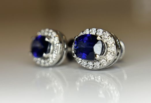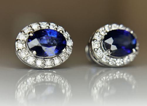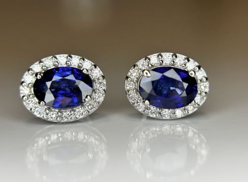 Beautiful Natural Unheated Blue sapphire earrings with diamonds and Platinum