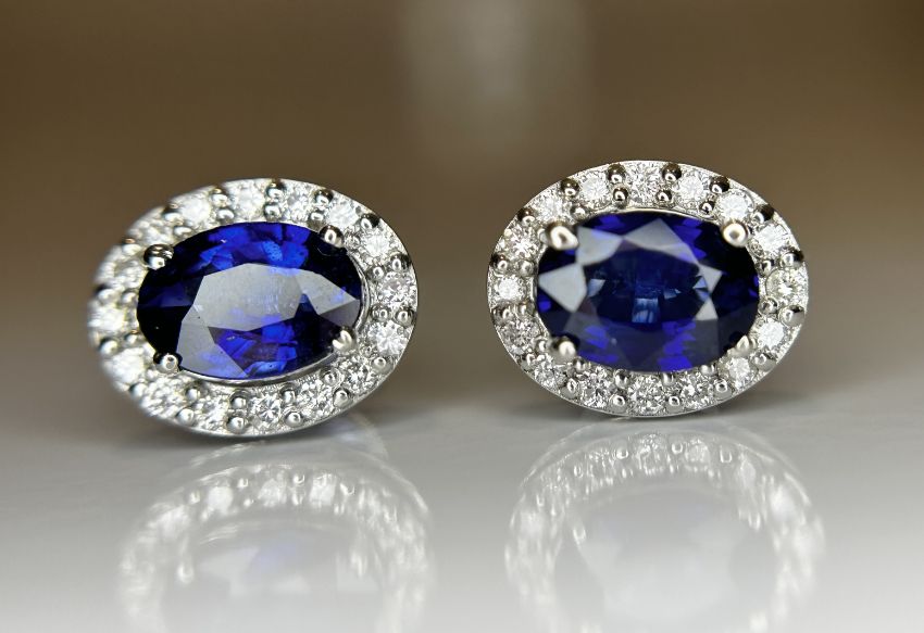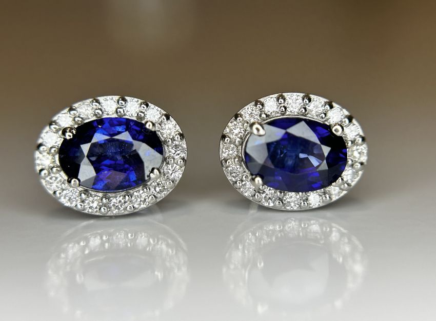 Title: Beautiful 1.85ct Natural Unheated Blue Sapphire Earrings With Diamonds & 950 Platinum