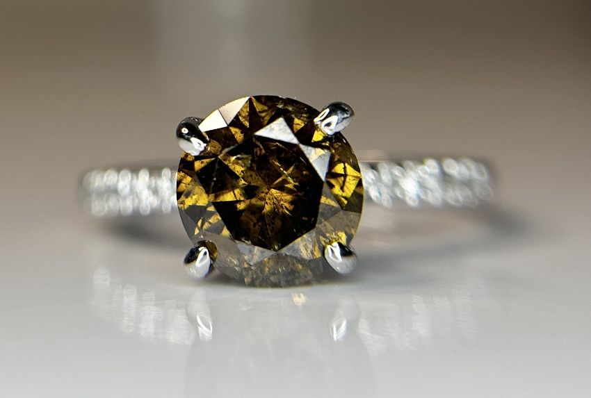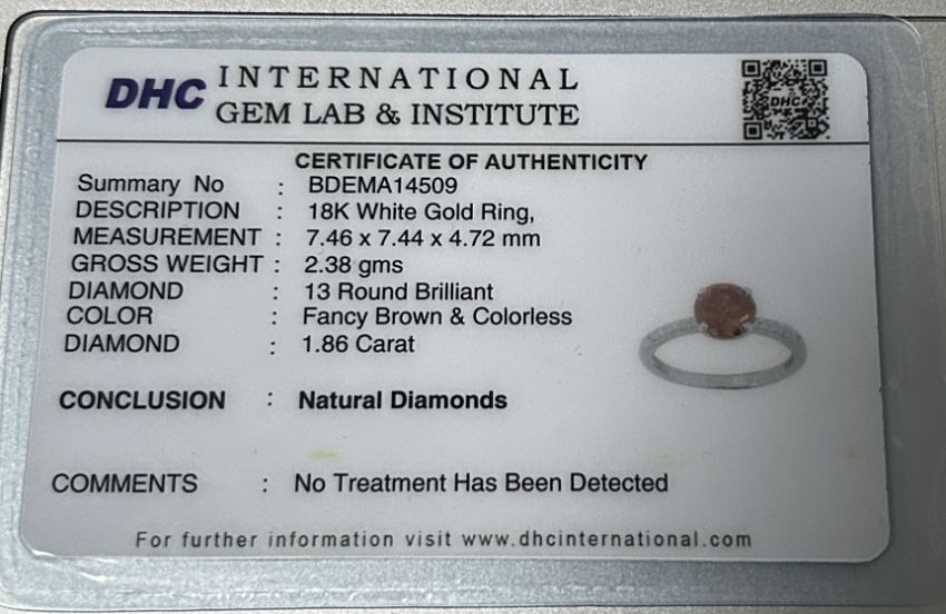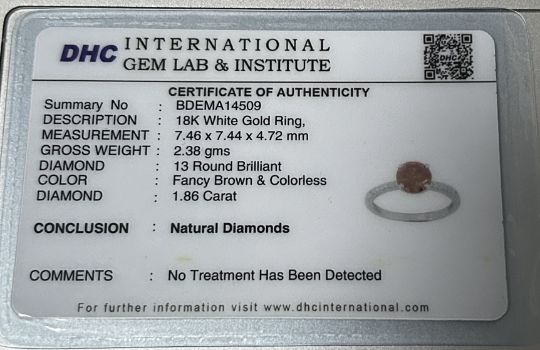 Title: Beautiful 1.86ct Untreated Natural Champagne Solitaire Diamond & 18k Gold