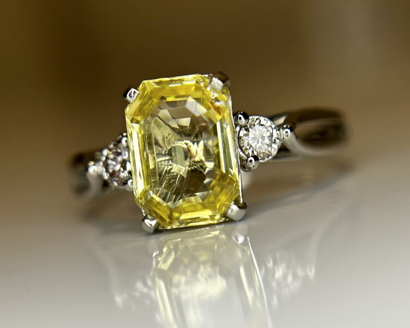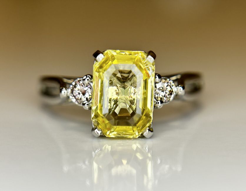 Beautiful 2.40ct Unheated Untreated Natural Ceylon Yellow Sapphire Diamonds & 950 Platinum