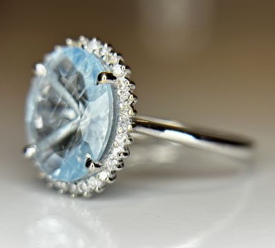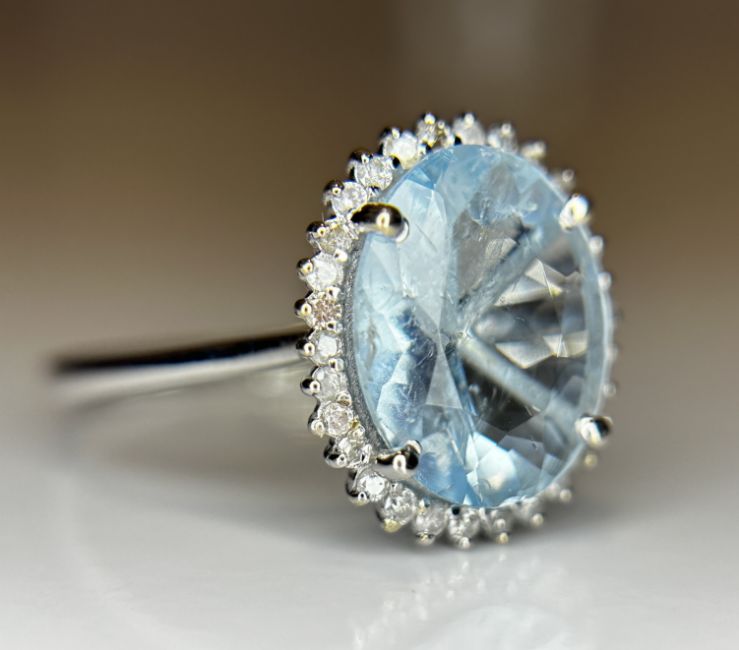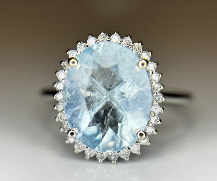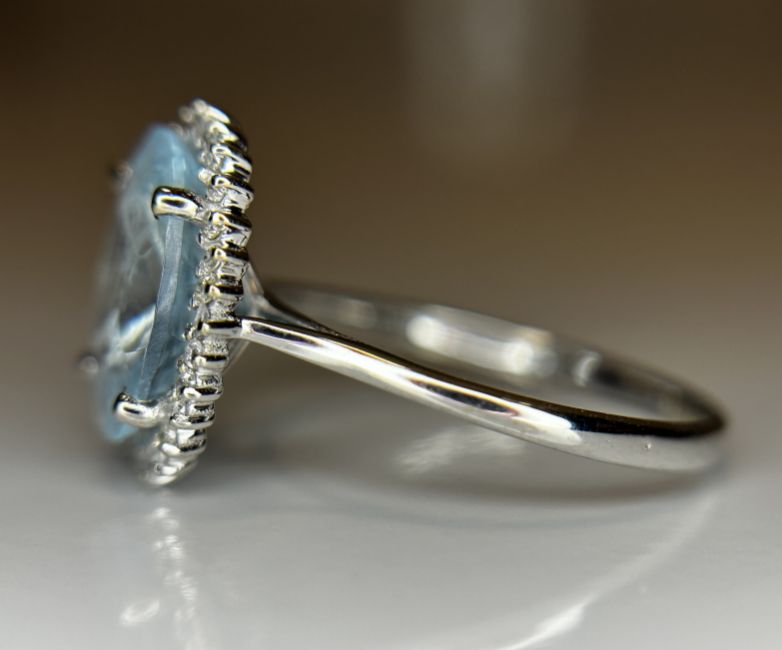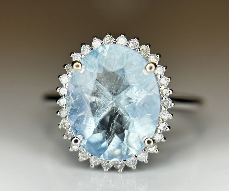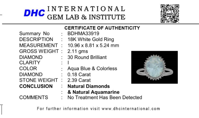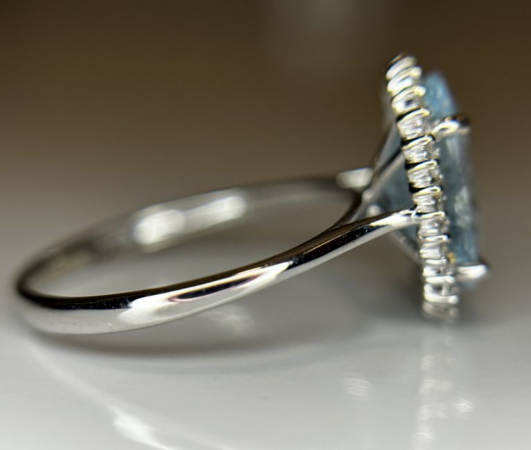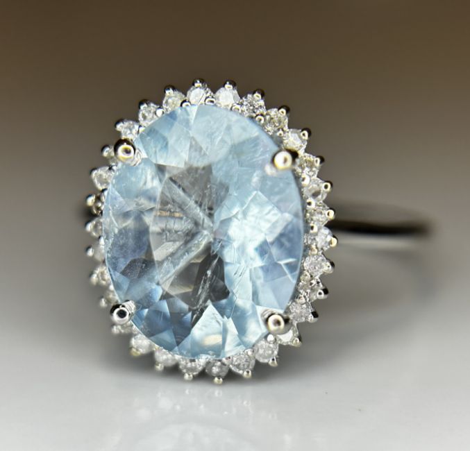 Title: Beautiful 2.39 CT Natural Aquamarine Ring With Natural Diamonds & 18k White Gold
