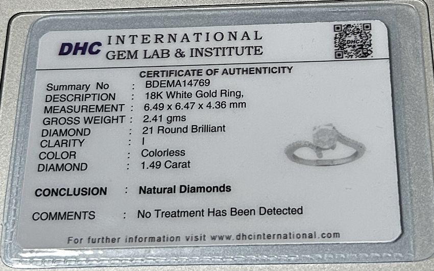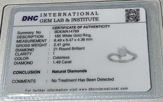 Title: Beautiful 1.49ct Untreated Natural Solitaire Diamond & 18k Gold
