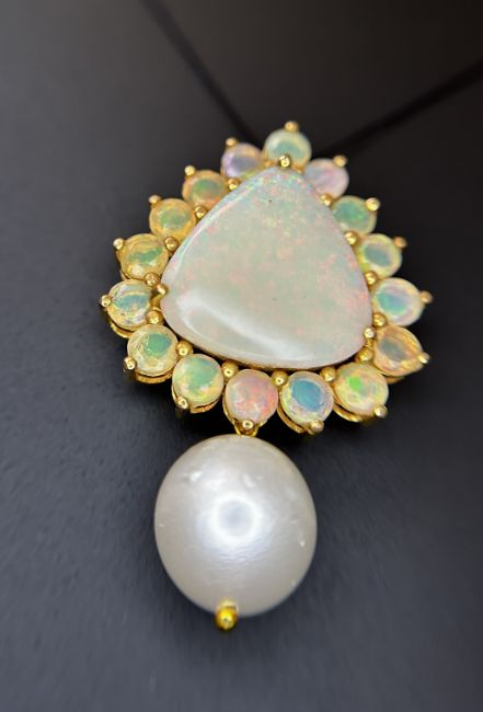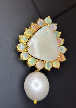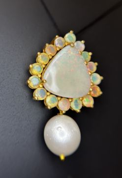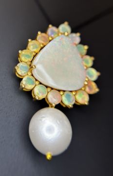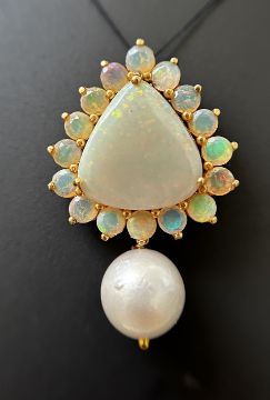 Title: Beautiful 20.50ct Natural Australian Opal and Southsea Pearl Pendant & 18k Gold