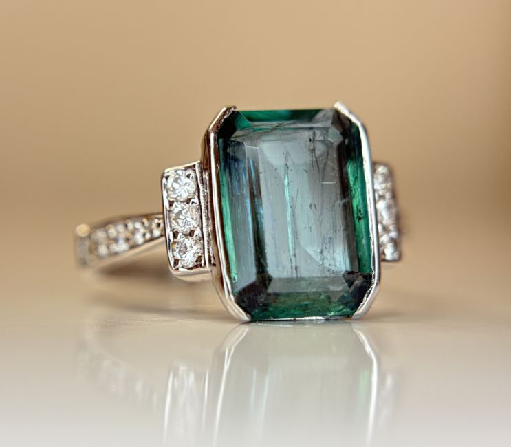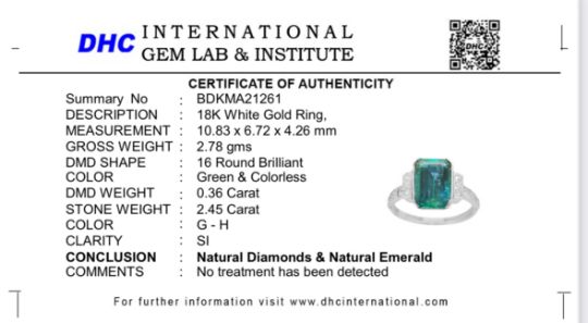 Title: Beautiful 2.45 CT Natural Emerald With Natural Diamonds & 18k Gold