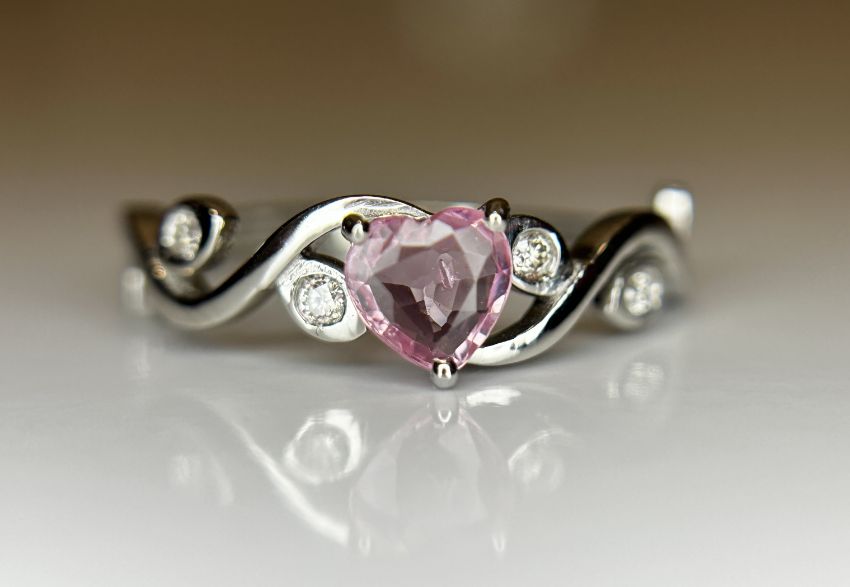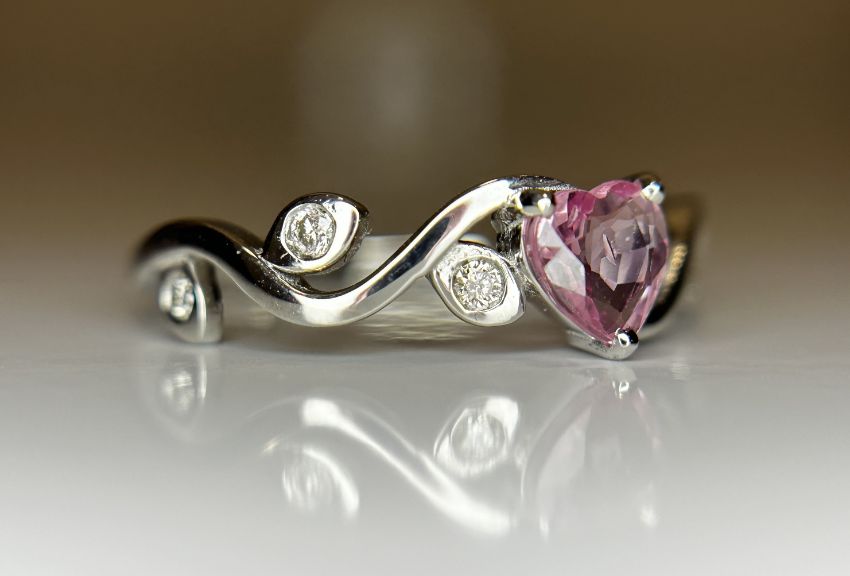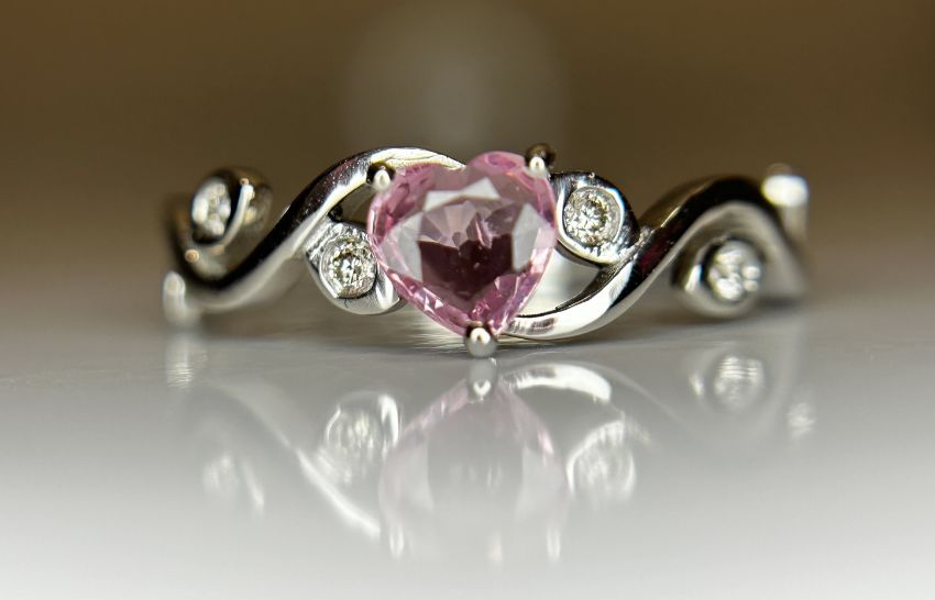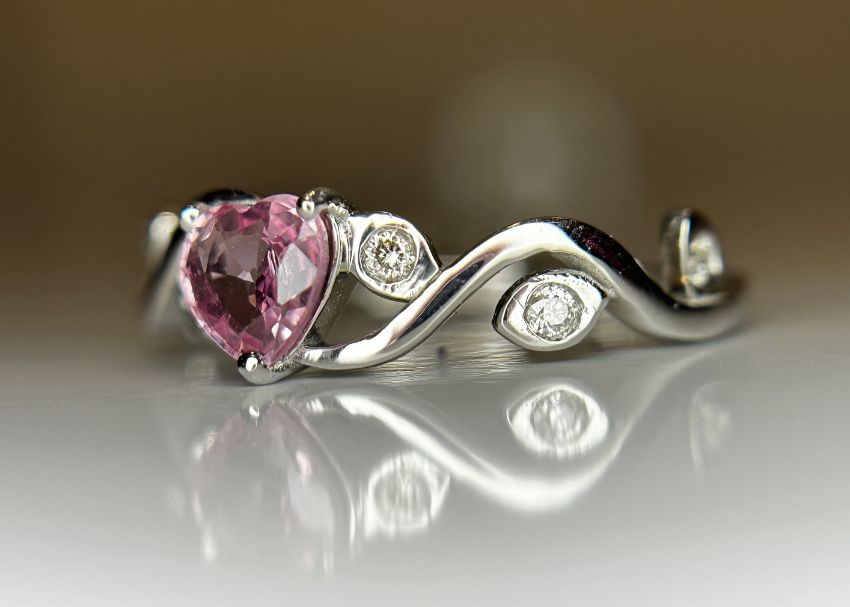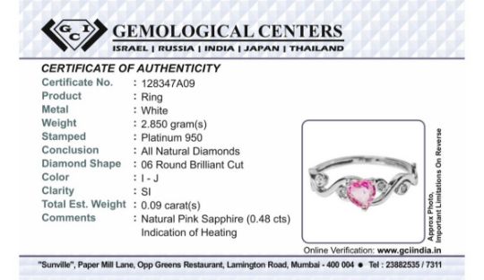 Title: Beautiful 0.48ct Heart Shape Unheated Ceylon Pink Sapphire Diamonds & 950 Platinum