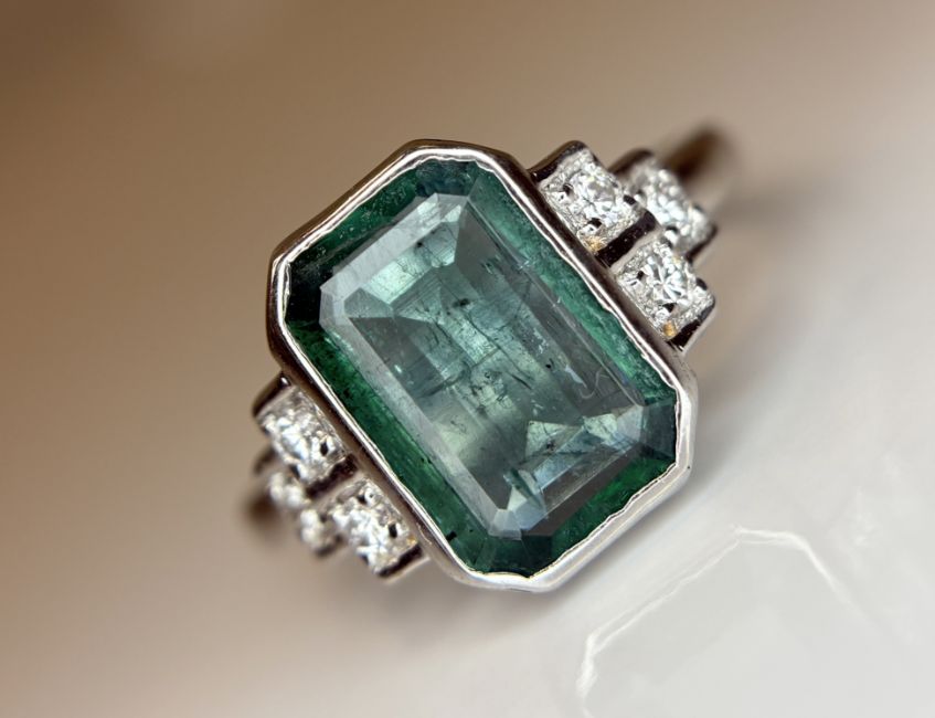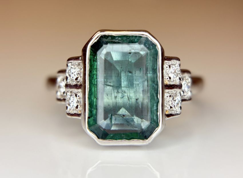 Title: Beautiful 3.00 CT Natural Emerald With Natural Diamonds & 18k Gold