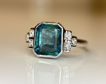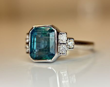 Beautiful 3.32 CT Natural Emerald With Natural Diamonds & 18k Gold