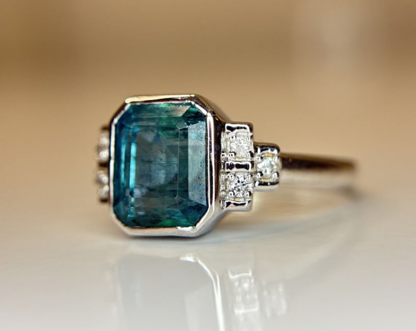 Title: Beautiful 3.32 CT Natural Emerald With Natural Diamonds & 18k Gold